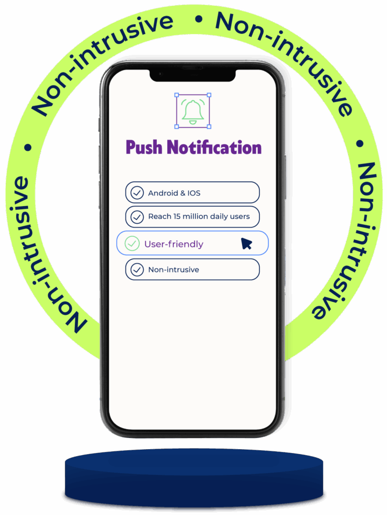 Maximise engagement and visibility with our push notification product. Reaching a global audience of 15 million daily users, mobile notifications are opened 35 times more often than emails, with 70% viewed within the first five minutes.